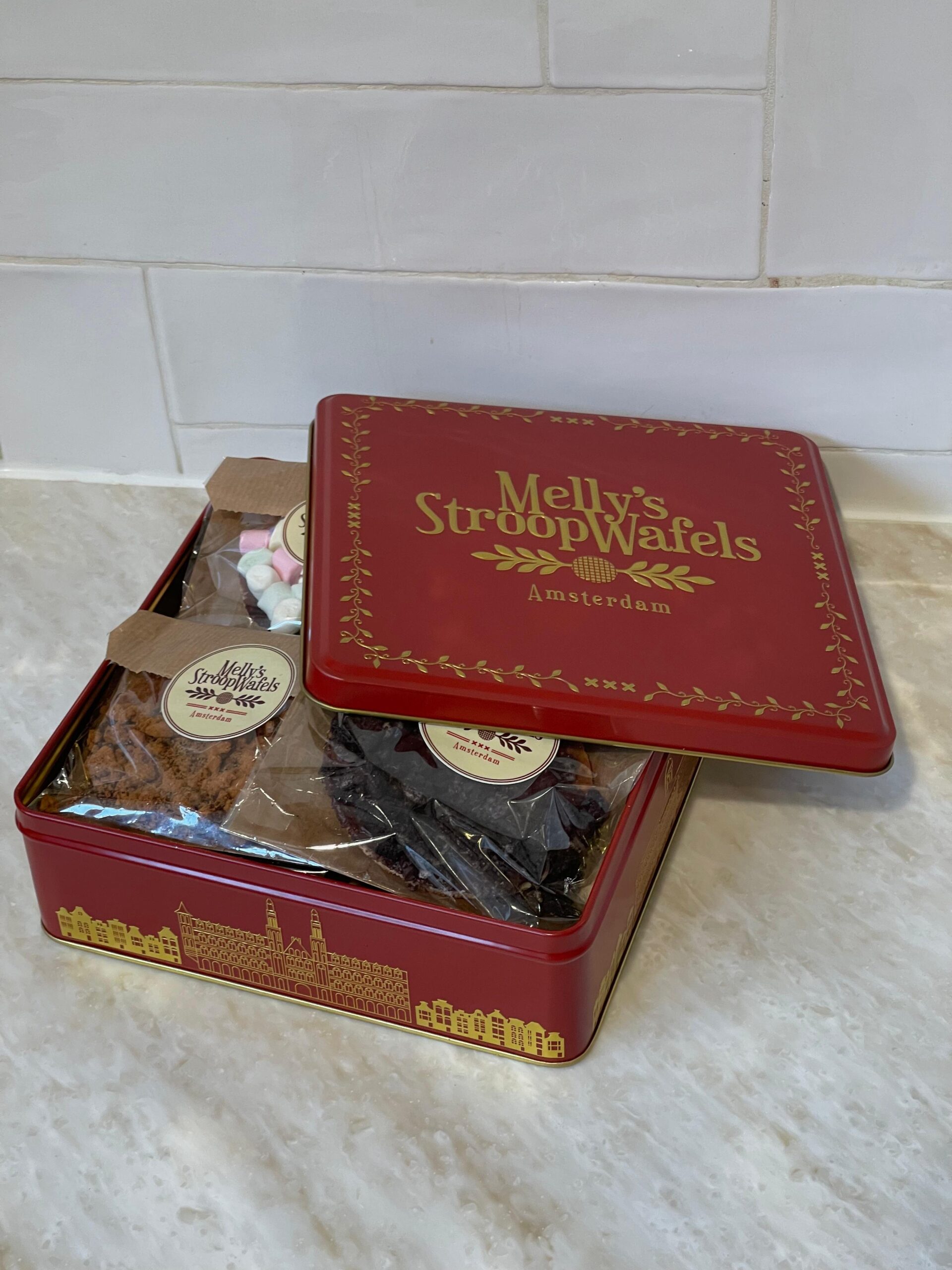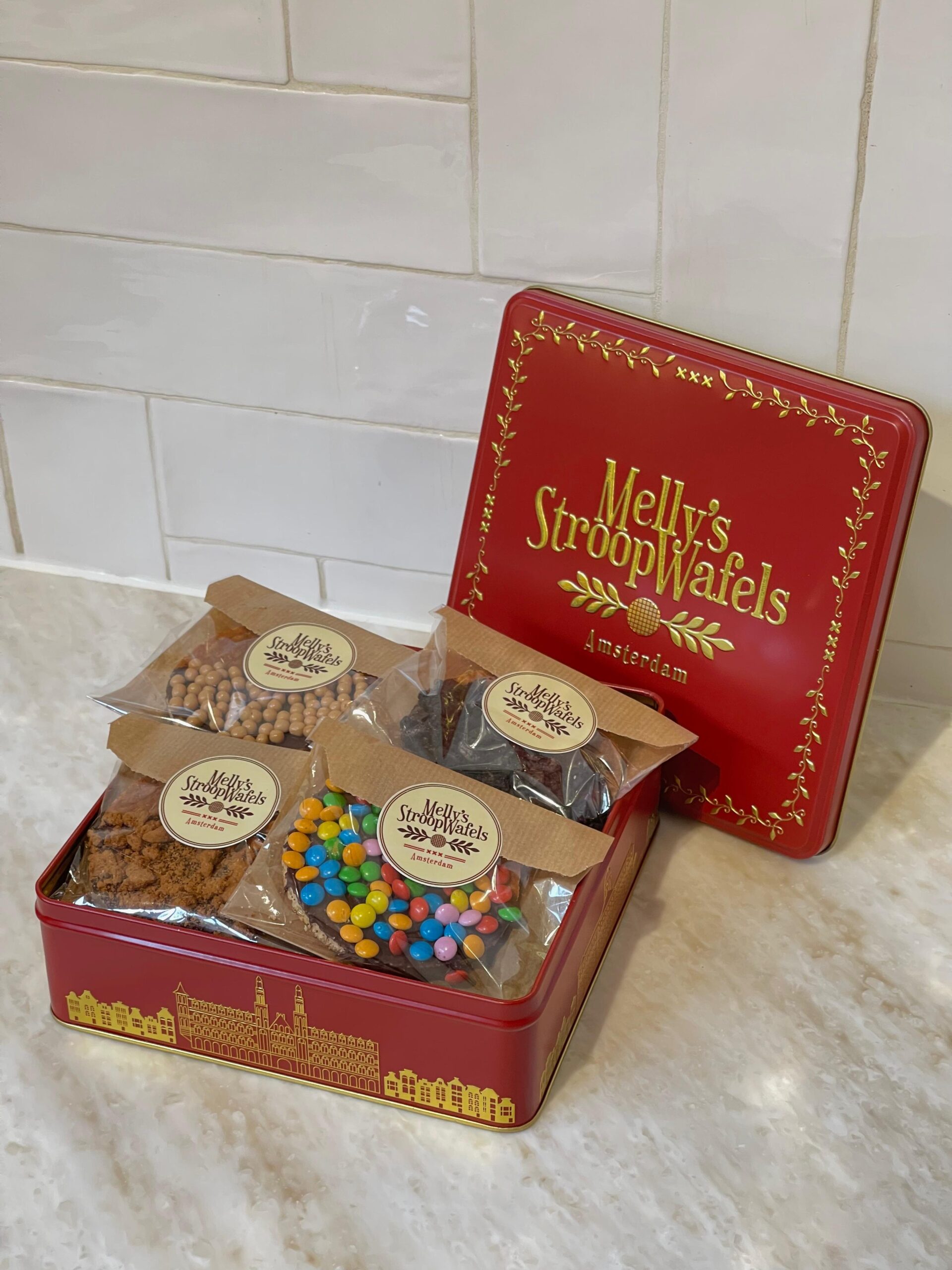 Melly’s tin filled with 12 delicious Amsterdam baked decorated Stroopwafels