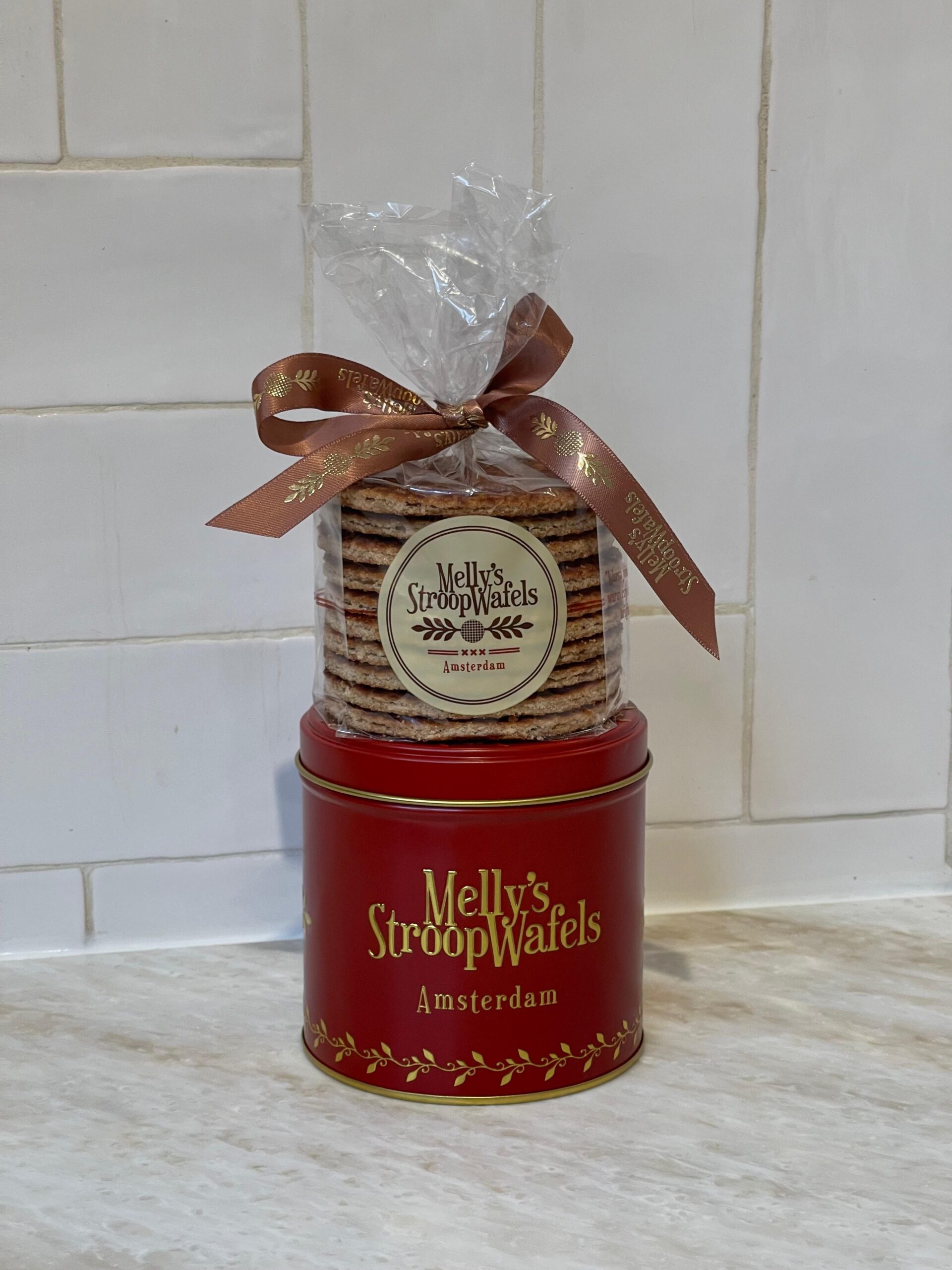 Melly’s tin filled with 10 delicious Amsterdam baked Stroopwafels